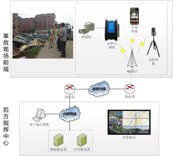 在擁有公眾移動4G網絡的情況下,現場的各個終端設備均利用4G網絡進行通信。
