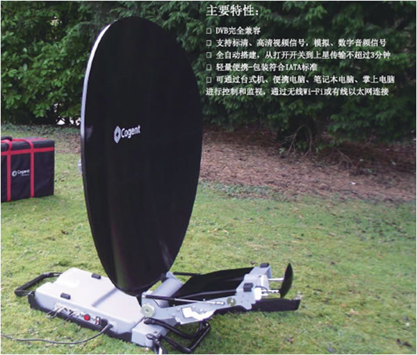 衛星通信便攜設備具有超便攜、高度集成的一體化機身設計;易操作、“Q-Touch”一鍵自動尋星的極致用戶體驗; 集成先進的編碼調制一體化解決方案,提供高標準質量的視頻傳輸等特點,配備口徑為120CM*110CM的Ku格里高利雙反射天線,衛星便攜站創立了DVB完全兼容,支持標清、高清視頻信號,模擬、數字音頻信號,全自動搭建,從打開開關到上星傳輸不超過3分鐘,輕量便攜包裝符合IATA標準,可通過臺式機、便攜電腦、筆記本電腦、掌上電腦進行控制和監視,通過無線Wi-fi或有線以太網連接,完善的功能讓用戶面對任何突發性情況都能高標準、高效率的完成信號傳輸任務。